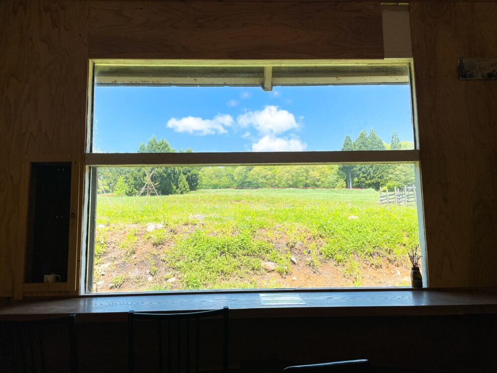 混み合っていて大変そうでしたが、内装はおしゃれで雰囲気があるし、窓の外は牧草地?が広がっていてとても綺麗でした。