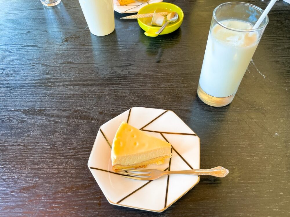 ランチメニューのピザセットにはドリンクと前菜、デザートのチーズケーキもついてきました。