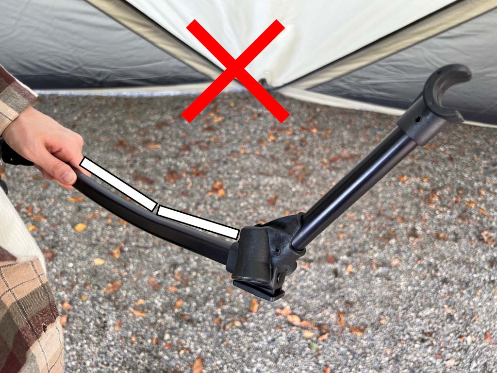 レッグフレームの向きが「への字」の状態にすること