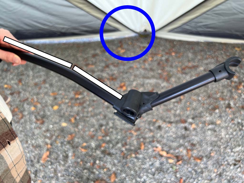 その際にヒモを引っ張りながら、サイドフレームの先端がスリーブ内にしっかり固定するように入れます。