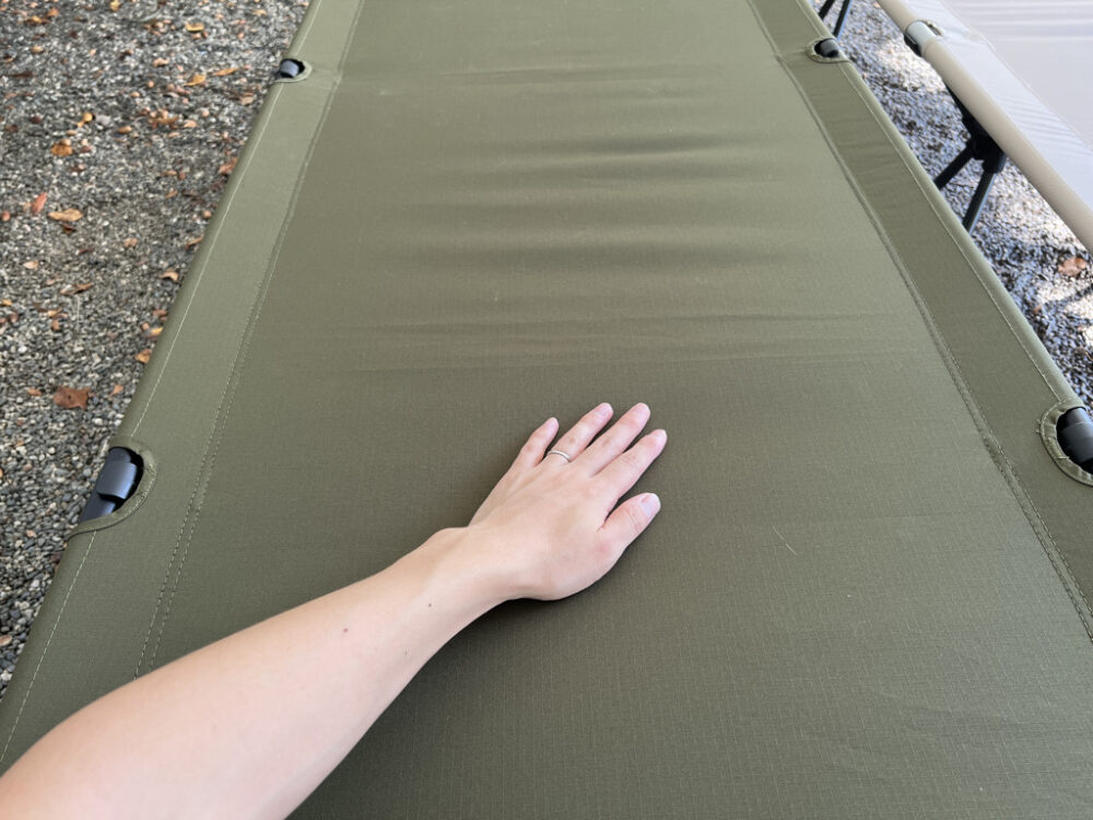 ただハリ具合に関しては、好みが分かれると思いますので一概に言えませんが、個人的にはヘリノックスのライトコットよりは好みですね。